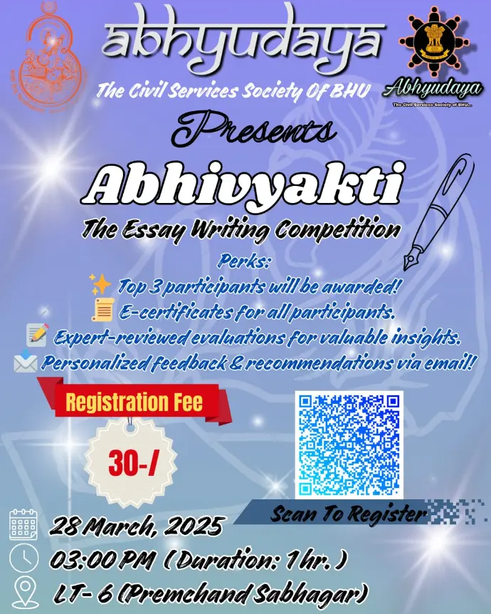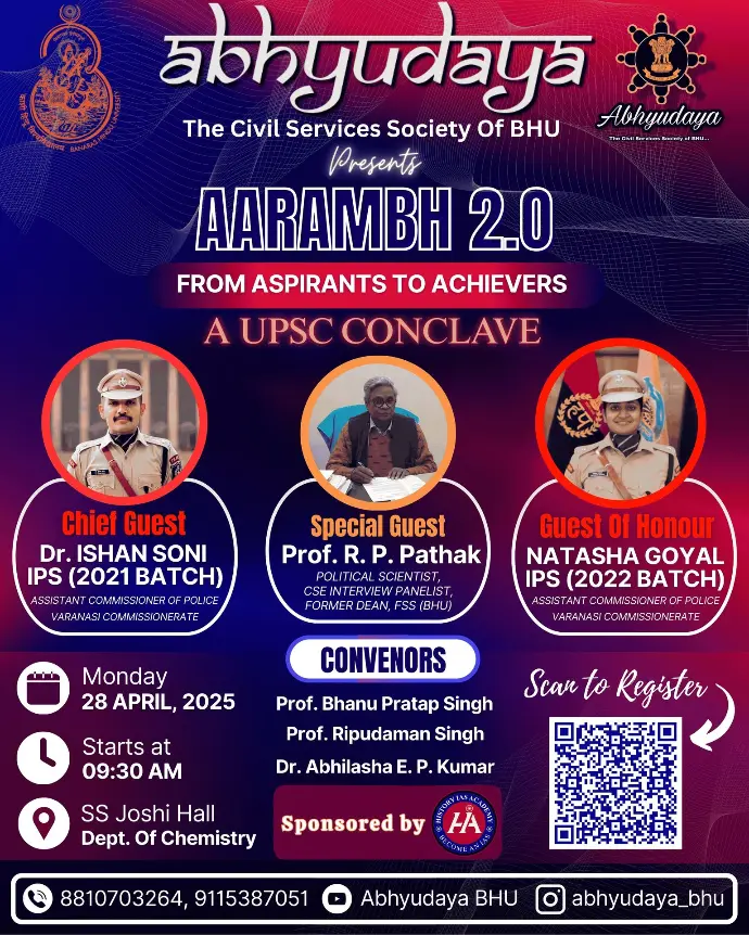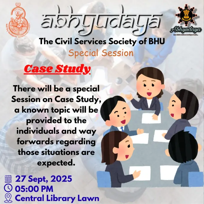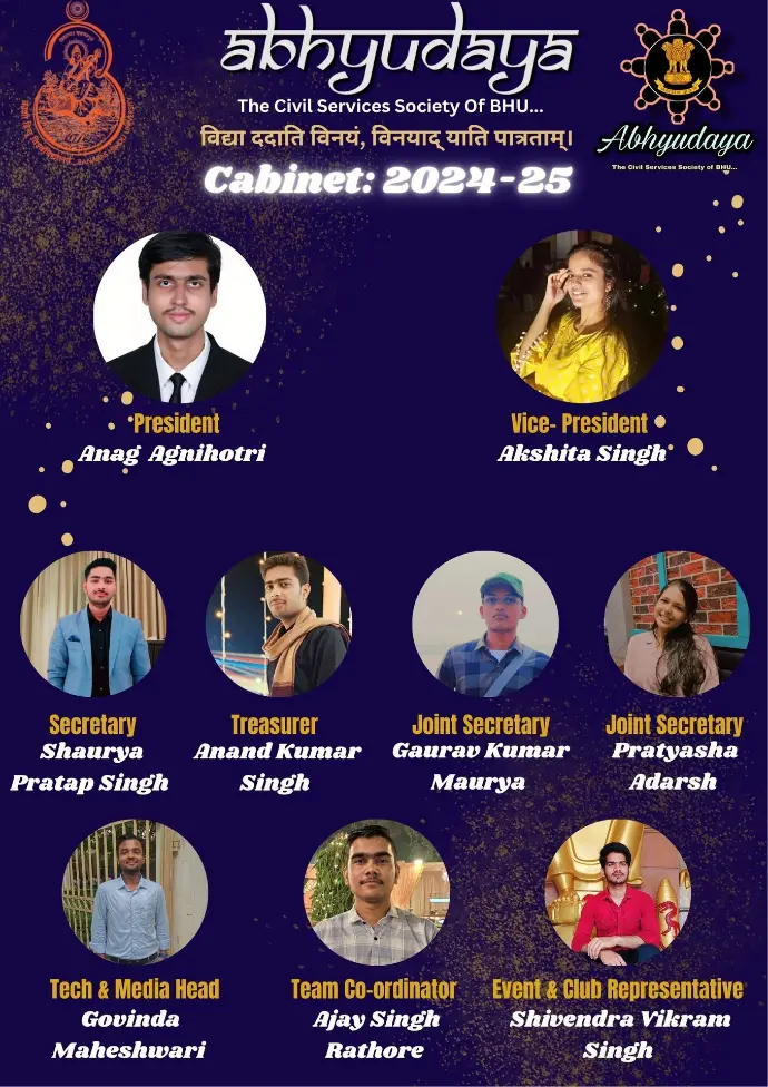 ABHYUDAYA: The Civil Services Society of BHU was established with the vison to create an atmosphere for the serious civil services aspirants to achieve all round enhancement in their personality and learn not only the skills necessary to ace the exam but also the skills that light the path towards achieving the greater life goals of self- actualization and become the best version of yourself.