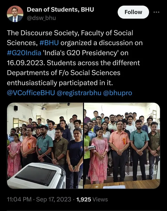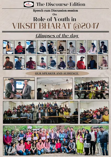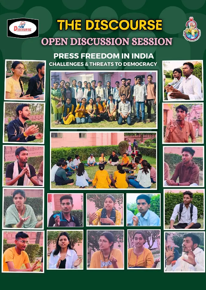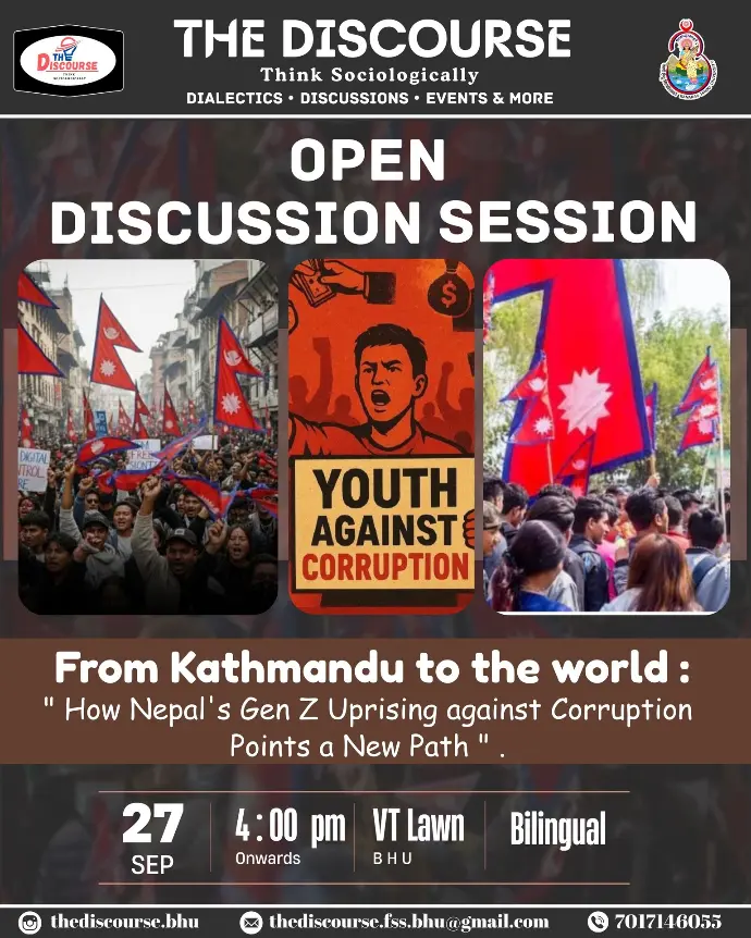 The Discourse, a student-centric society at Banaras Hindu University, founded three years ago by a group of passionate Sociology students. What began as a small initiative has now grown into a vibrant platform that connects students across BHU and its affiliated colleges. Today, The Discourse is powered by a diverse working committee representing multiple colleges and faculties, bound together by curiosity, dialogue, and the love of ideas. Every Saturday, we host open discussion sessions, welcoming perspectives on a wide range of topics. Alongside, we also organize lecture sessions with thought-provoking themes to nurture critical thinking and dialogue.